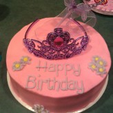 This is a vanilla cake filled with chocolate ganache and covered with a chocolate flavored fondant. Decorations are also made from fondant.