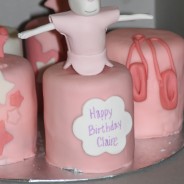 Over the weekend I made some mini cakes for an Angelina Ballerina Birthday party. The cakes were chocolate with vanilla buttercream and red velvet with a Baileys cream cheese frosting. All the caakes were covered in fondant and the ballet shoes and stars are fondant too. I made the Angelina figure from gum paste. Enjoy!! ...
