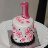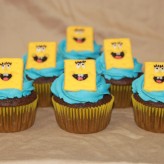 This cake/cupcake combo was for a little boy’s party. My favorite were the cupcakes…chocolate cupcakes filled with cherry buttercream, topped with a fondant spongebob!